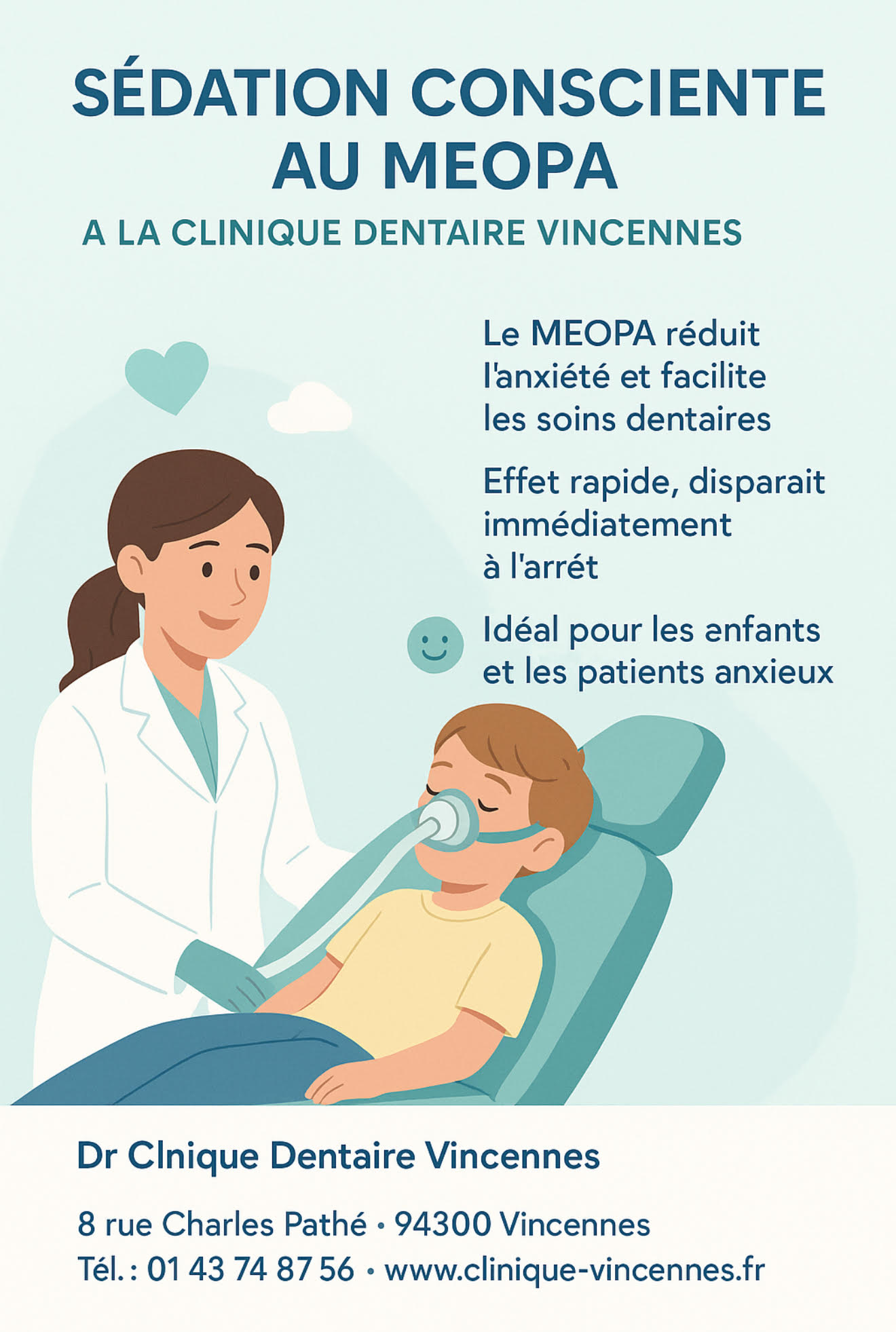 Le MEOPA est un mélange de gaz doux, utilisé depuis de nombreuses années en médecine. Il aide à réduire l’anxiété et à faciliter les soins dentaires.